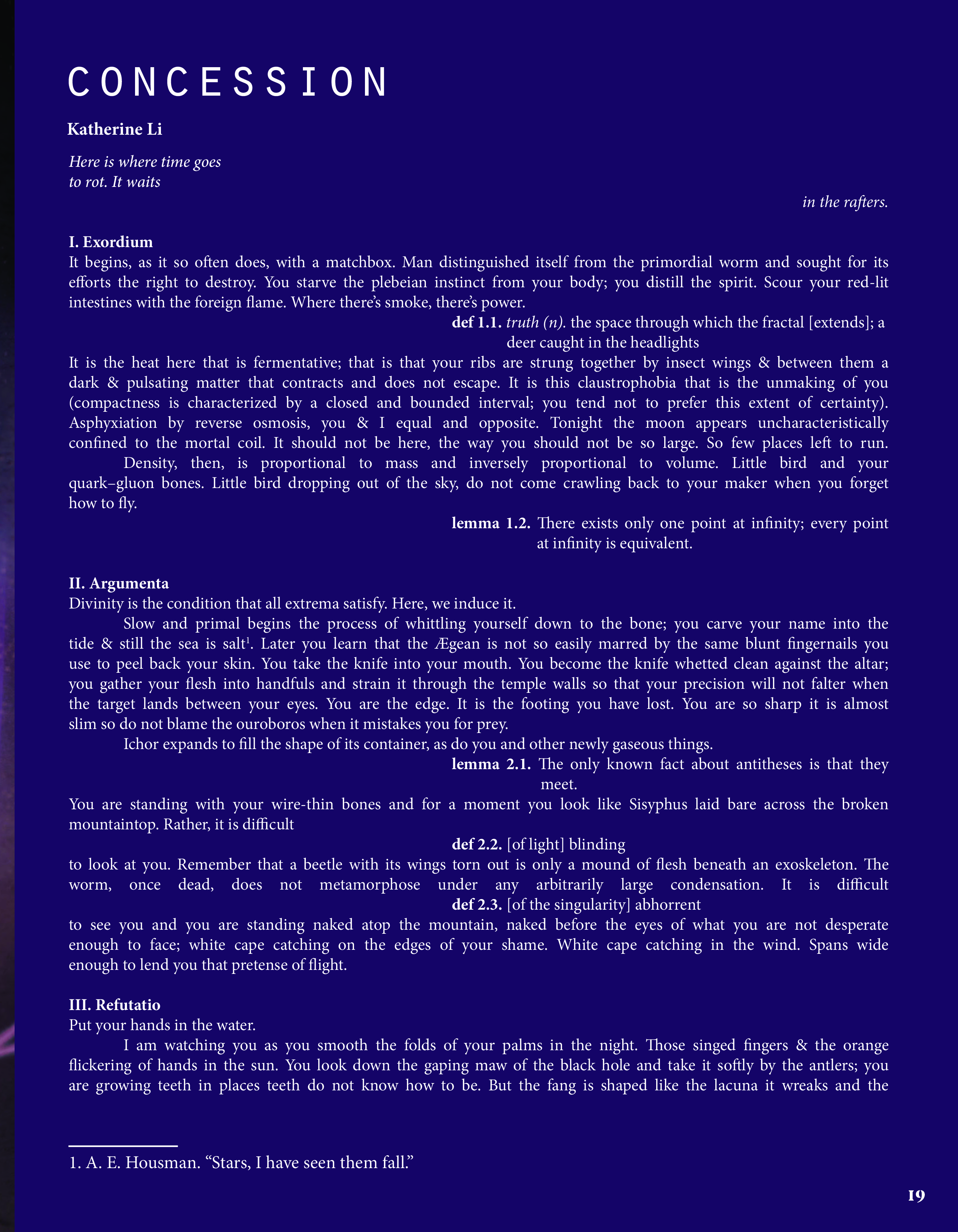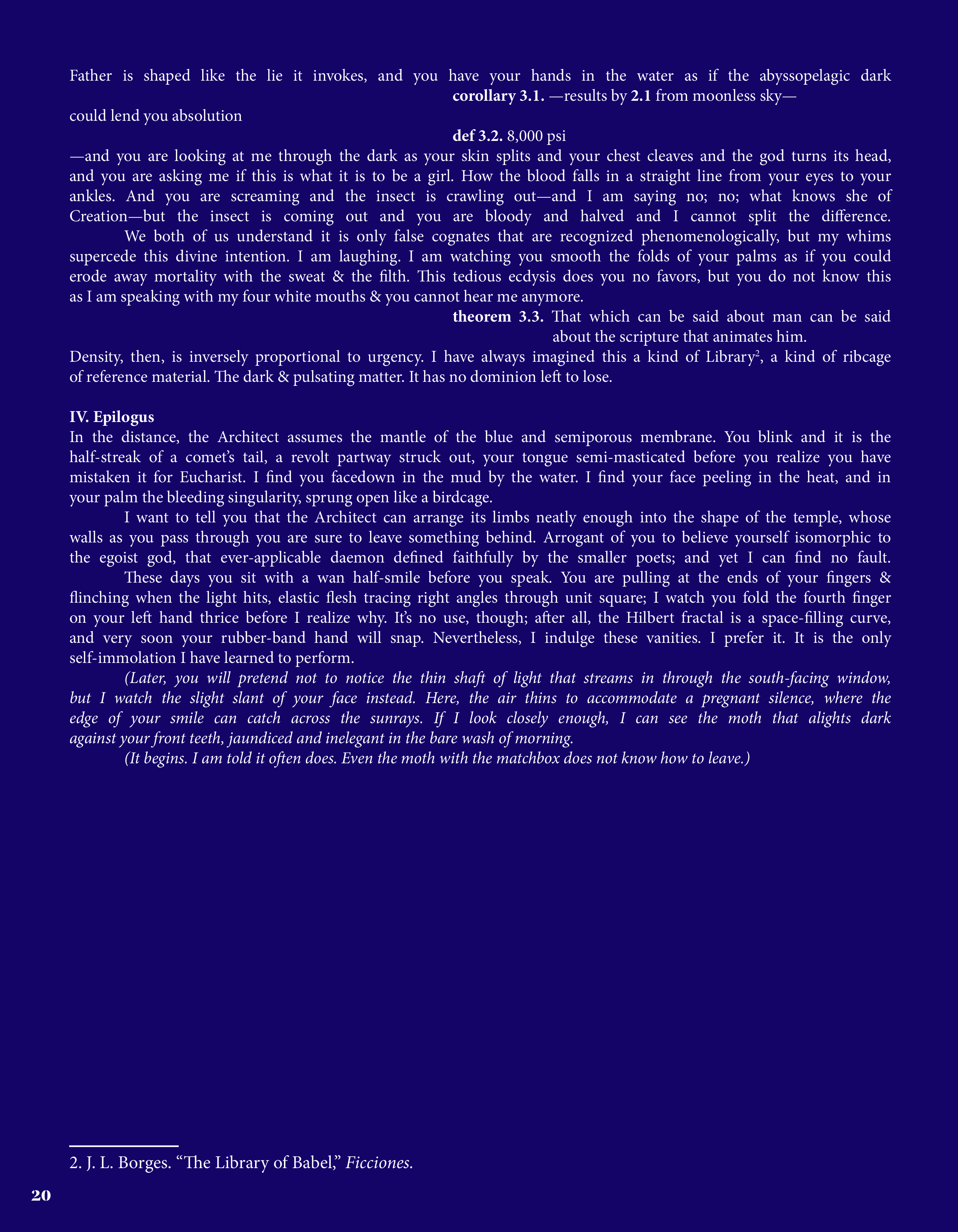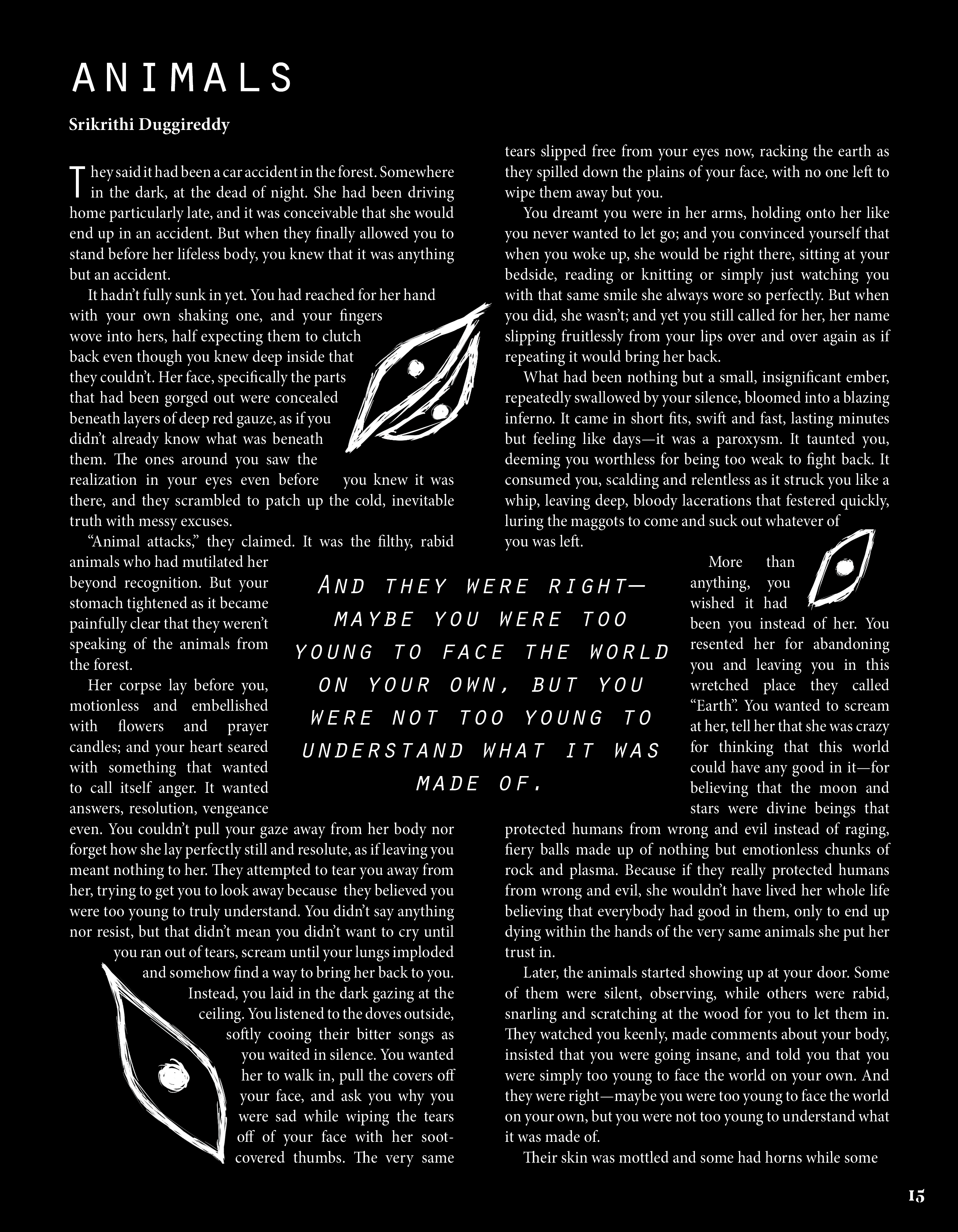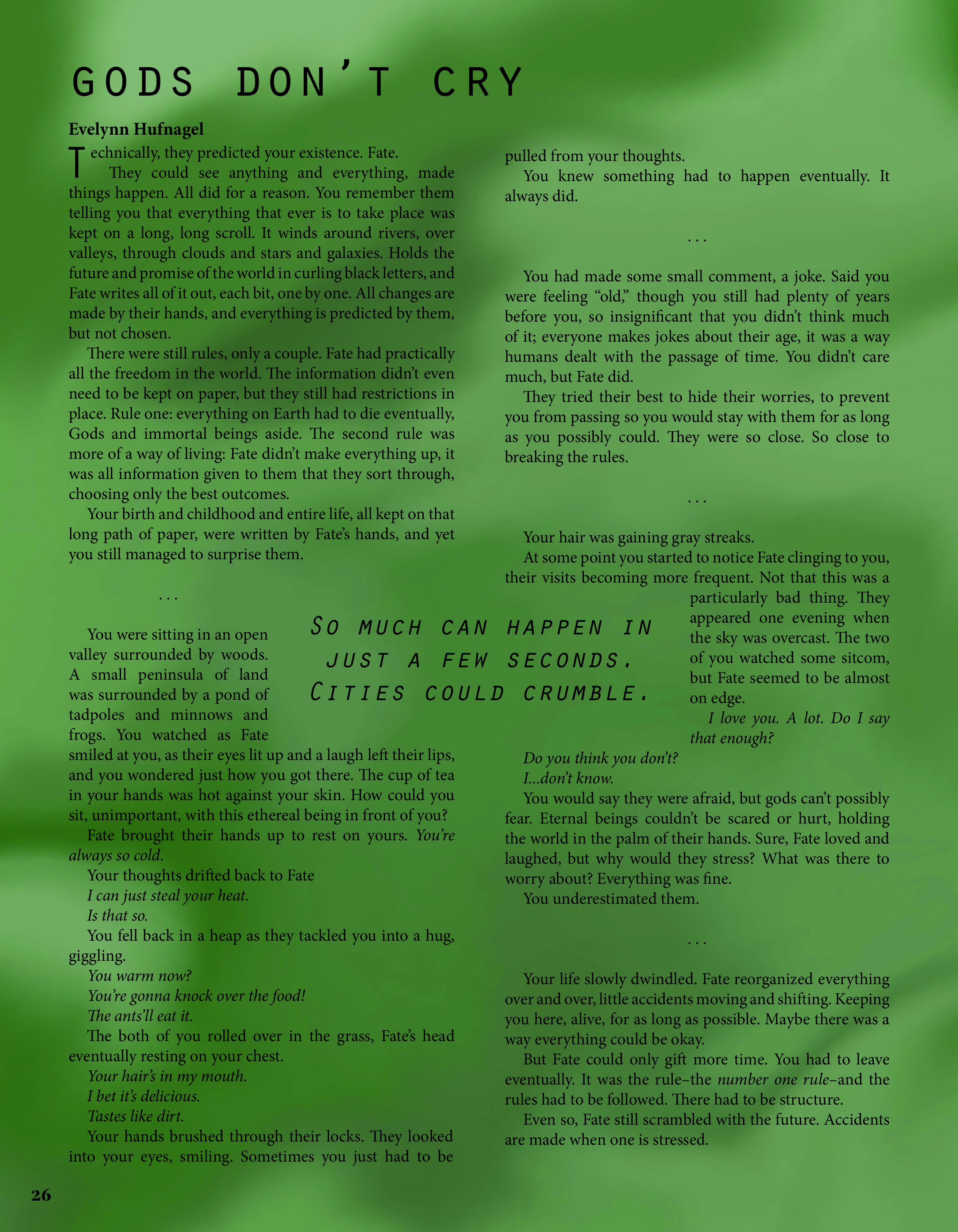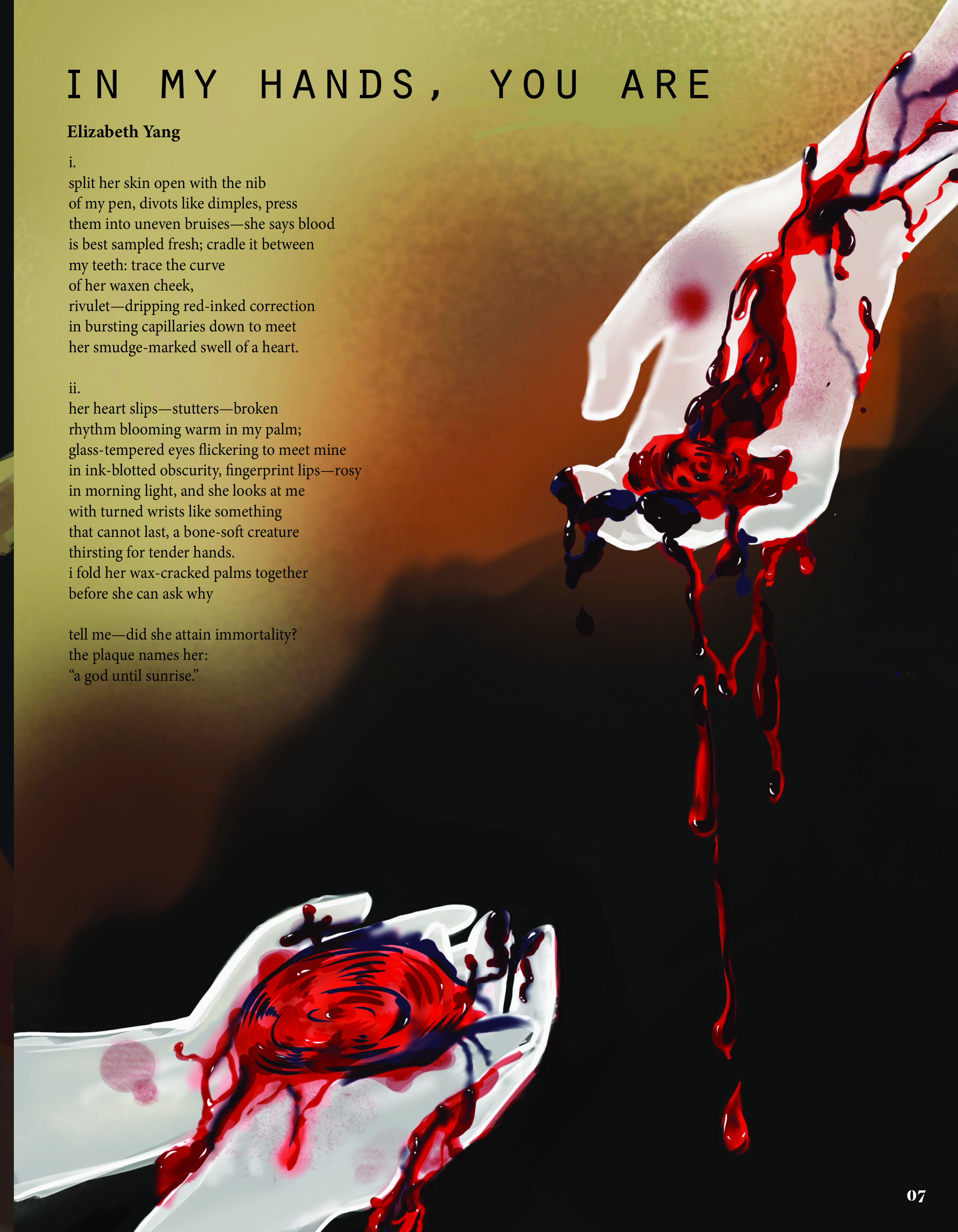 With our work, we navigate that spiritual space. Volume 9: Numen is a testament to art's acuity— maybe we can't contain the divine, but we can trace the dappled shapes of their shadows, searching for their answers.