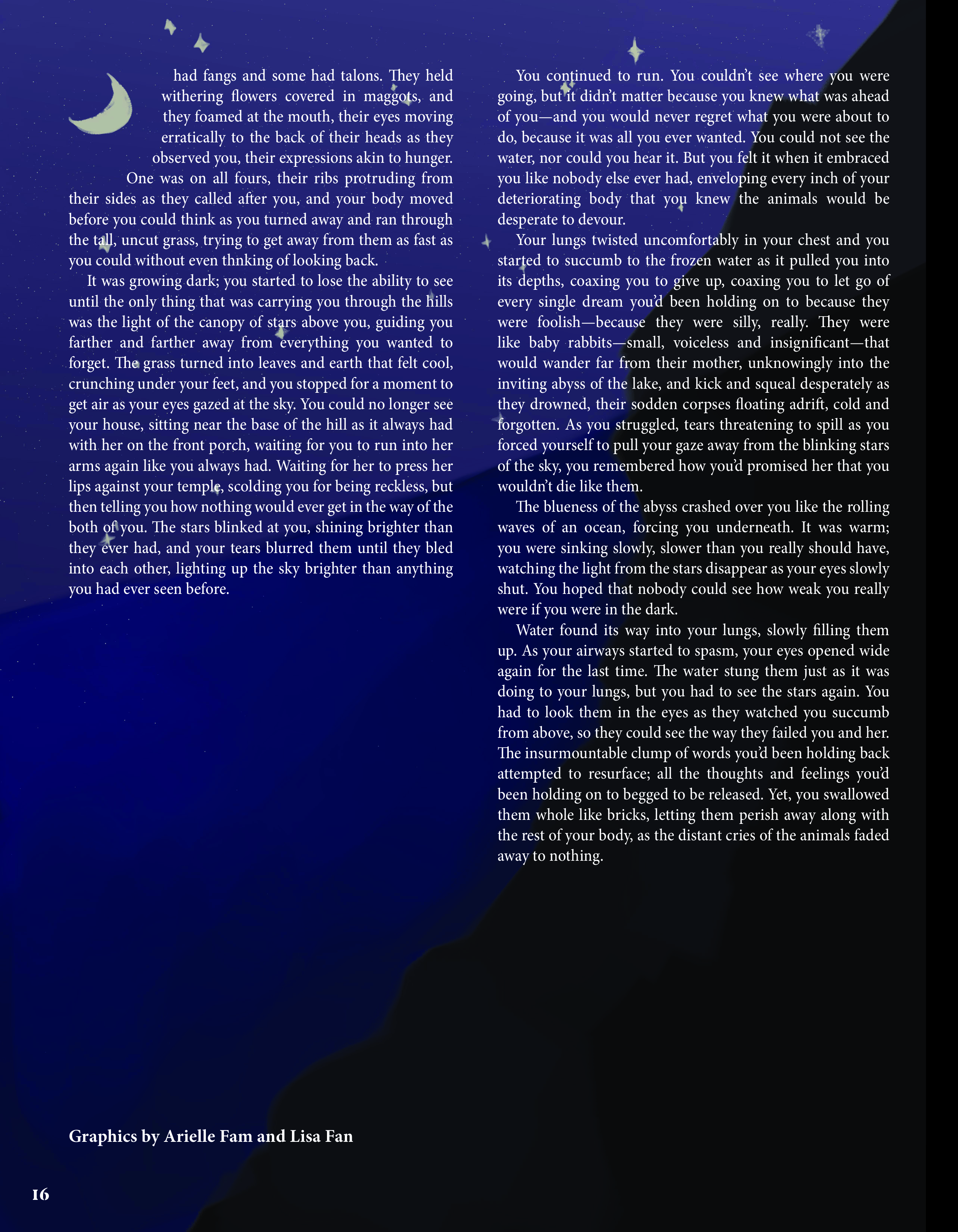 But what appears to be a white haze on the horizon only turns out to be winter. Though we Californians are spared from truly brutal weather, we witness the days shortening, friends retreating— signs that our lives are privy to forces vastly beyond us. As freshmen contend with their burgeoning identities and seniors figure out how to pack theirs within word count, the thought inevitably appears: How much of this was ever in our control?
